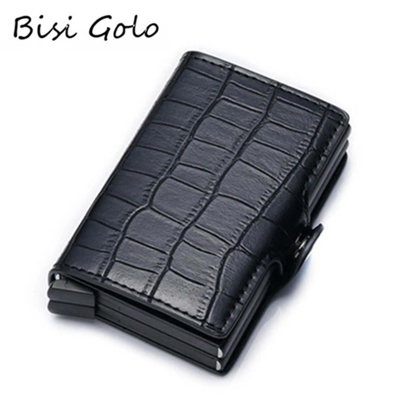 Good Product BISI GORO Credit Card Holder 2020 Aluminium Double Boxes Fashion Men And Women PU Leather Metal RFI