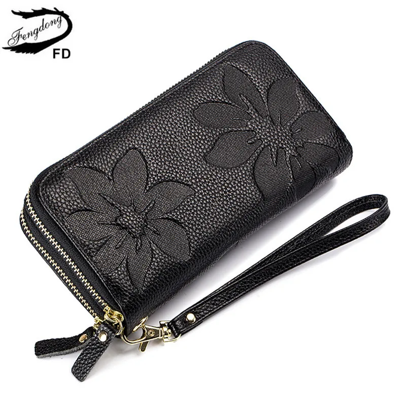Good Price FengDong ladies big card wallet women genuine leather phone wallet girl gift female big money bag v
